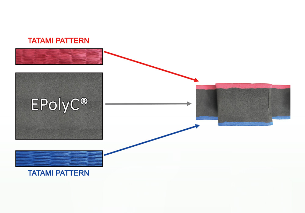 有鑑於此,董事長高永信及廠長高建全從2017年便開始思考如何將廢棄餘料轉換成可使用的再生原料, 努力不懈地反覆研究之後,在2020年底終於找到能將EVA廢料裡的化學物質完整去除的方法,並透過再製技術研發出新型再生原料─EPolyC®,EPolyC®是可使用於一般配方的EVA再製原料。佳瑤企業透過生產配方升級,同時改善製程技術來讓EPolyC®的使用率更高,目前最多已可使用50%的EPolyC®於發泡地墊上。此外,若使用EPolyC®來替代部分填充劑,可使地墊的物性提升,亦能兼顧到物性提升後的成本控制,不僅如此,添加了EPolyC®所製作的地墊,還通過了歐洲EN-71的測試規範,質量好,價格有競爭力。